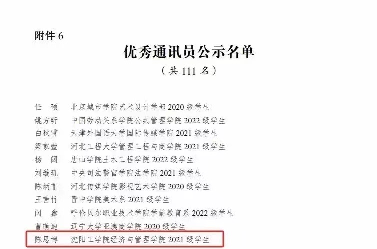 11月24日,共青团中央青年发展部公布了2023年“镜头中的三下乡”征集活动遴选结果,我校经济与管理学院国情观察团被评为优秀图片团队,经济与管理学院团总支书记李祎琳、2021级学生陈思博分别被评为优秀指导教师与优秀通讯员,我校国情观察团社会实践团队已连续七年获得共青团中央嘉奖。