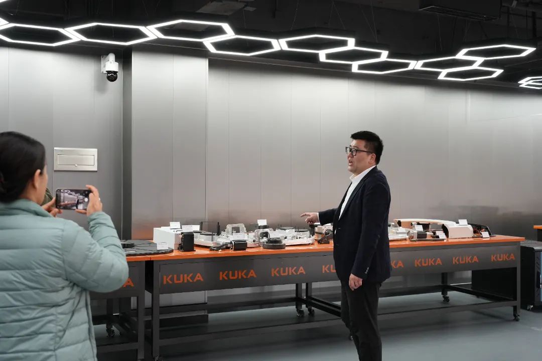 学习中,大家看到库卡中国提供的汽车车门点焊涂胶装配工艺线为原型的行业级生产线,包含机器人产线、AGV物料运输和穿梭车立体库三个部分,并参观了立体仓库实训系统、智慧物流实训系统、机器人仿真实训平台和数字孪生实训平台等,真切认识到现代工业机器人工作模式及效果,切实了解到全面覆盖机器人集成应用的系列课程和培训实训系统平台,提升了对智能制造发展趋势的认知。