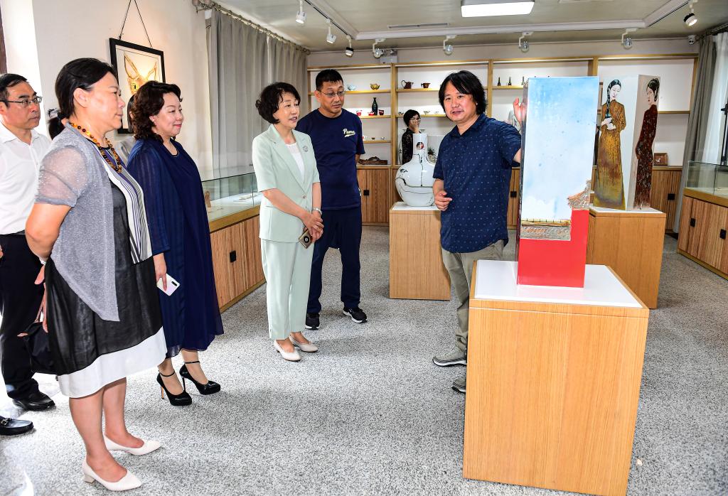 7月8日,九三学社省委专职副主委兼秘书长石晶率队来校,专题调研大官窑陶瓷非物质文化遗产传承、保护、开发和学校科研成果转化情况。党委书记胡晓梅会见石晶副主委一行,陪同参观校园和大官窑陶瓷工作室,并主持召开调研座谈会。